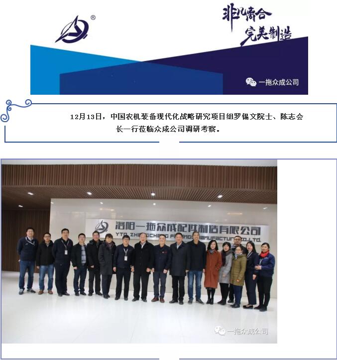 中國農(nóng)機裝備現(xiàn)代化戰(zhàn)略研究項目組羅錫文院士、陳志會長一行蒞臨我公司